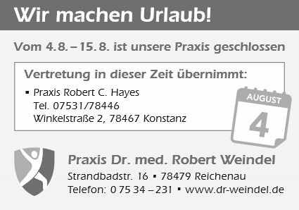 Praxis Dr. Robert Weindel Facharzt für Allgemeinmedizin Strandbadstr. 16 78479 Reichenau T. 0049-7534-231